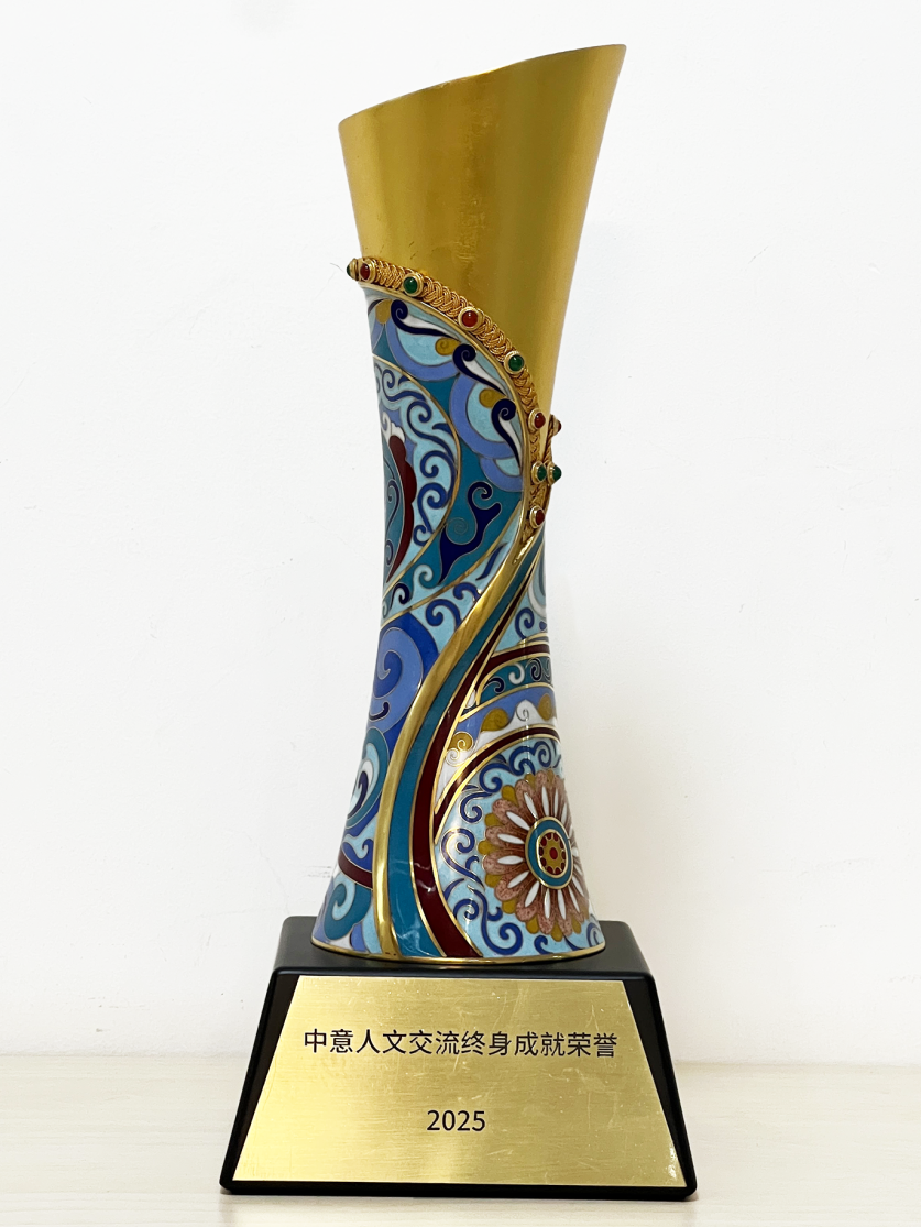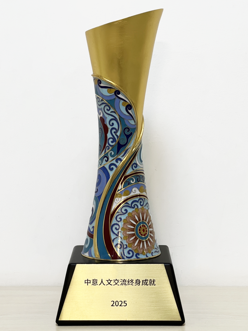 活动现场,“从北京到罗马”——中意人文交流系列荣誉获得者分别获颁景韵卓越尊、景韵华彩尊。景韵之尊系列作品以景泰蓝非遗技艺为语言,用釉彩讲述故事,记录下中意两大文明古国在交流中共同绽放的华彩篇章。