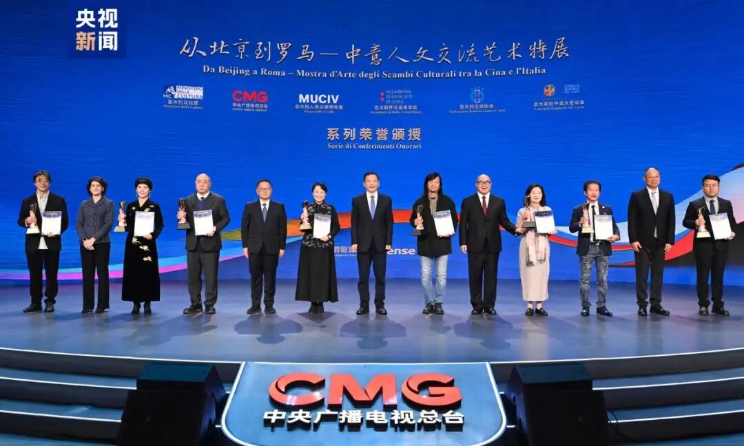 为庆祝中意建交55周年,迎接2026年米兰-科尔蒂纳丹佩佐冬奥会,今年6月,中央广播电视总台联合意大利文化部、意大利人类文明博物馆、意大利罗马美术学院、意大利足球协会、意大利拉齐奥大区议会主办的庆祝中意建交55周年艺术特展,在意大利林琴国家科学院盛大举行。艺术特展展出来自100多位中国当代书画名家、非物质文化遗产代表性传承人及工艺美术大师的200余件精品佳作,以及意大利人类文明博物馆珍藏的百余件意大利艺术作品,聚焦两国文化的独特性与共通性,彰显开放包容、多元共存的文明理念,构筑跨越山海、沟通民心的友谊之桥。